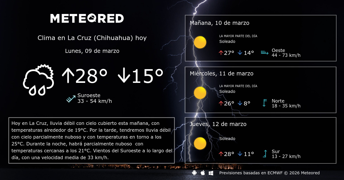 Pronóstico del tiempo para la siguiente semana. Los datos sobre el tiempo temperatura velocidad del viento la humedad la cota de nieve presión etc. Prevén nuevamente lluvias para Chihuahua los próximos días.